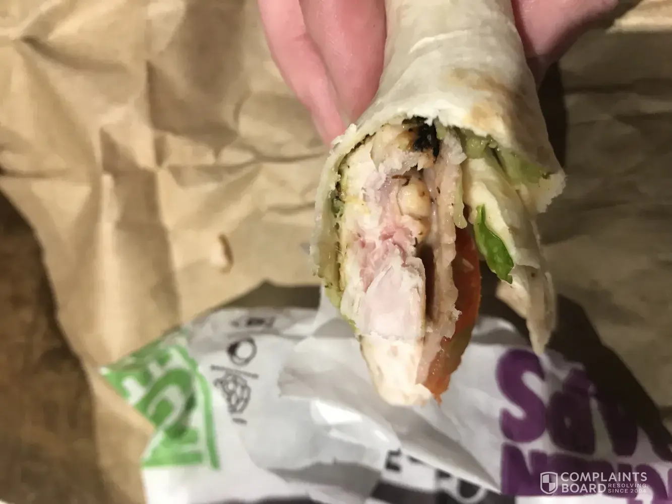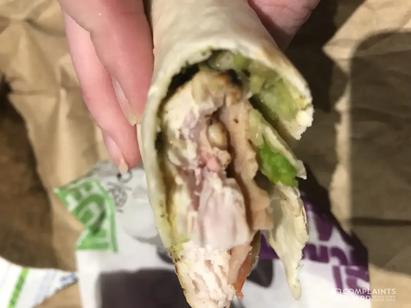 I went back to work continued to work and eat my wrap, I looked down after 3-4 bites to find it completely raw.