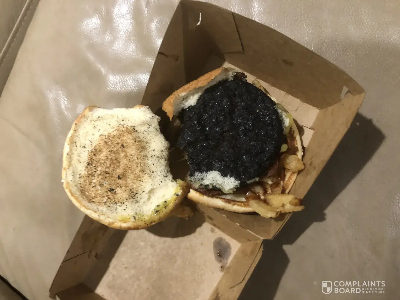 Our Burger was not able to be consumed took one bite and opened to notice the whole patty was burnt. Very black as seen in photos. We had to wait for our meal and now are not able to eat our dinner, because of how burnt our meal was. We don't have take away a lot but expect that when paid money time and care be put into our meal. Our meal will be great for our dog! Thanks