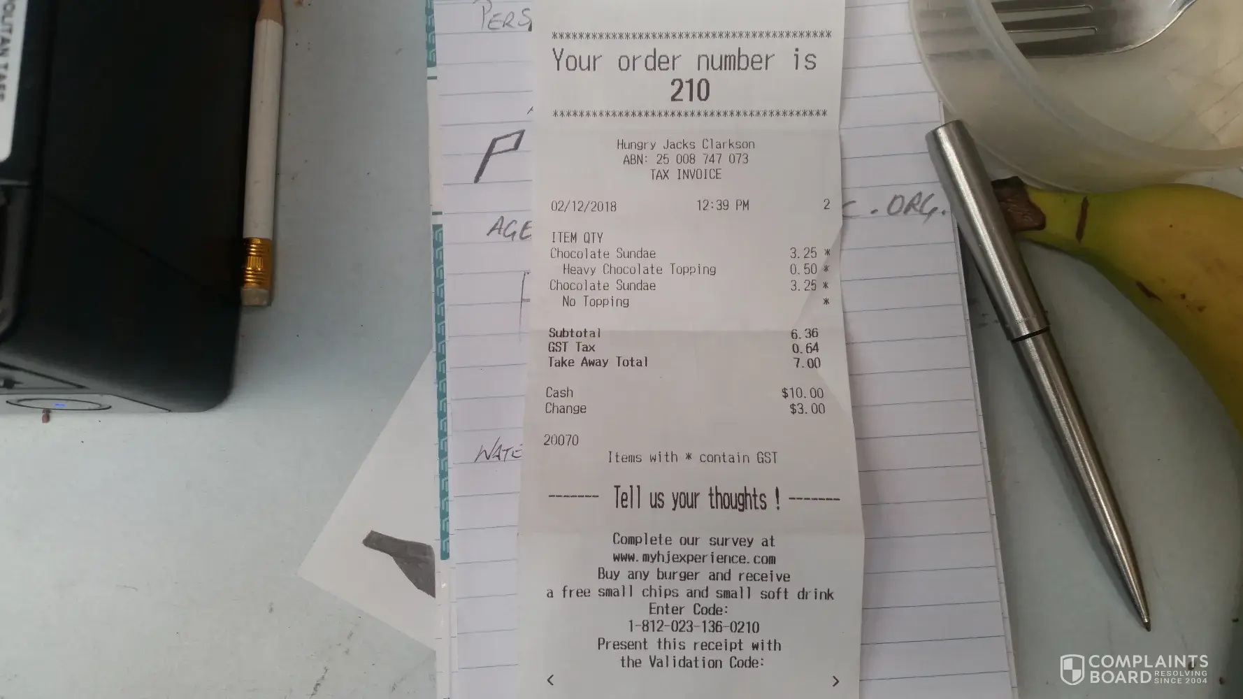 We were at hungry jacks north Mackay on the 12th November at six thirty pm
