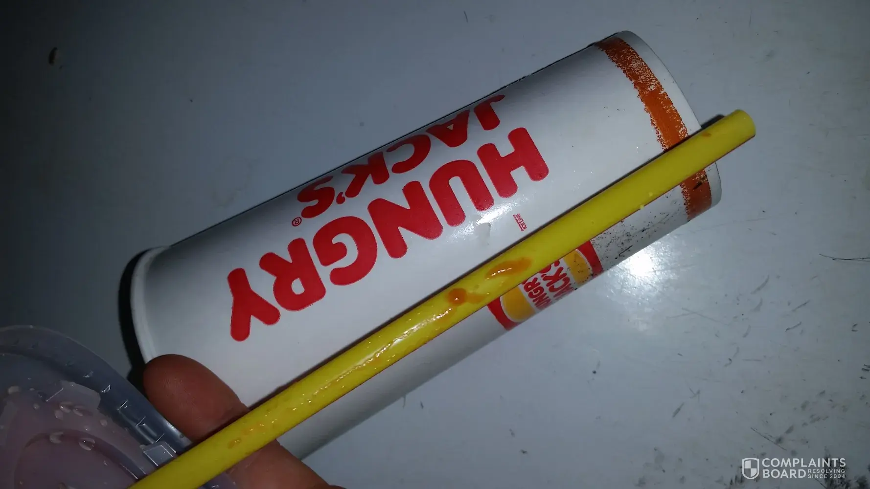 Hungry Jack's Australia tomato sauce on straw of drink purchased in drive thru