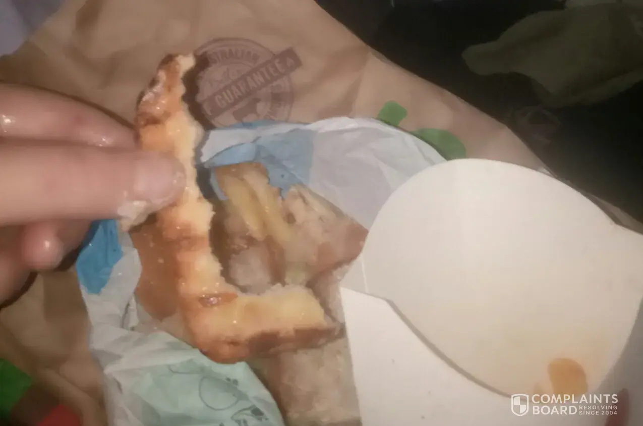 Cold and dry reheated food..fries were a horrible dark brown colour and so dry almost made me choke on them...the whoops were cold and had hardly anything on them ..also asked for fonts for the drinks and got coke . ..close to $30 of food that was discussing and could not be eaten..I do...think it would have been very possible we all would have got Verry I'll ..not very happy bout this waste of money