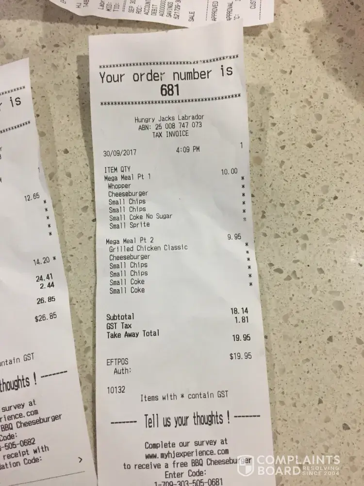 Purchased 3 large bacon and egg muffin meals from hungry jacks on the corner of Vincent and Beaufort st. Was not offered a receipt and only received half the hash browns that were supposed to be included. Purchase was made this morning on 2nd September for Father's Day breakfast at around 9am. It's funny how things are always missed when they don't provide a receipt, I wasn't even offered one! I can provide bank statement for proof of purchase if there are any issues. My whole motivation for ordering a large meal was for the additional hash browns, otherwise it is just a normal meal that you pay more for. Feeling ripped off, this hungry jacks never gets it right!