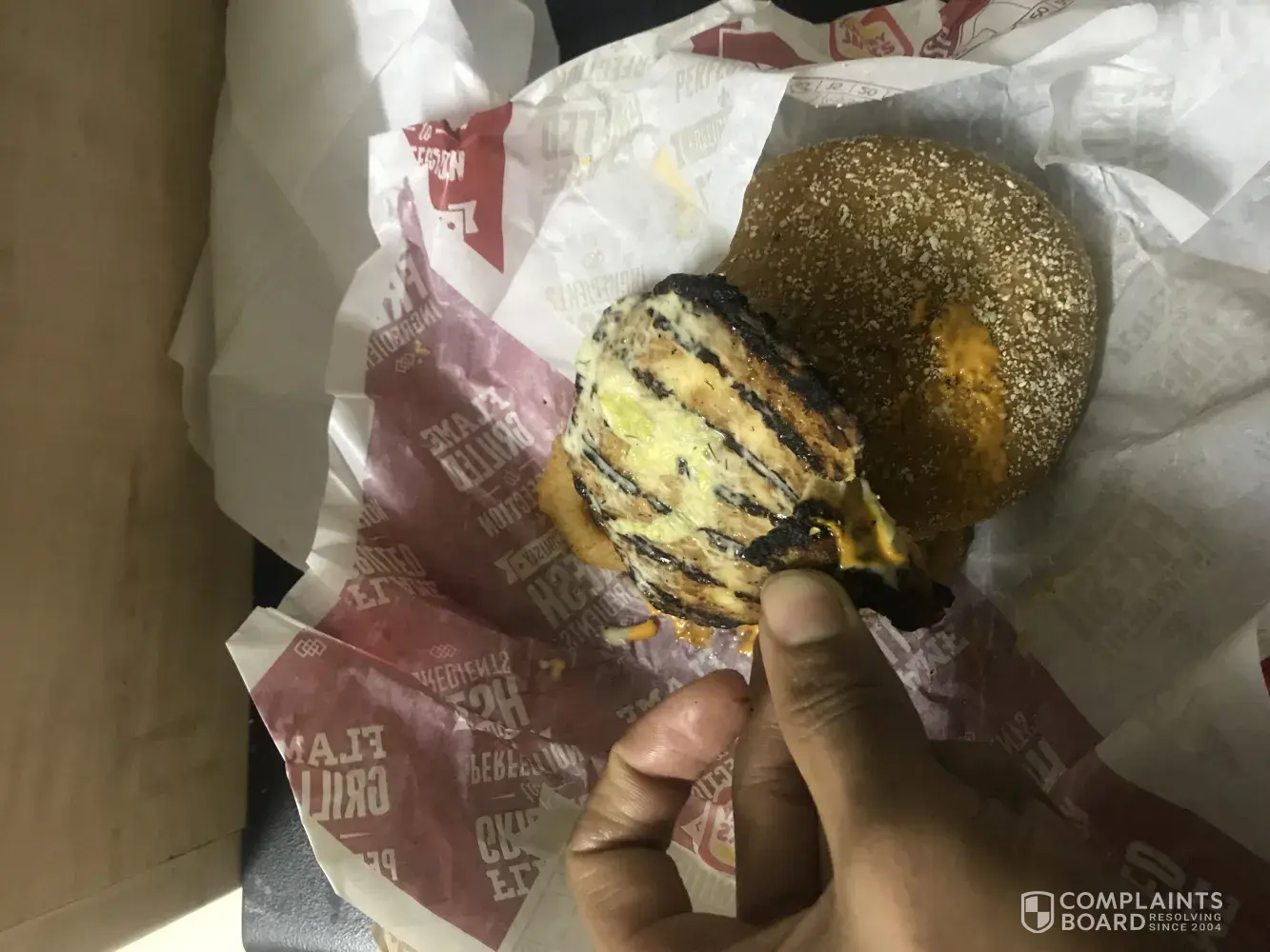 I bought two grilled chicken burger from hungry jacks and the chicken was not fresh and it was too rubber and over cooked, it was burnt and i was not even able to tear it with my hands. It was like rotten wood which has been kept in water for so many days. I was totally disappointed coz i was hungry at that moment and it was nearly 4 o'clock in morning.
