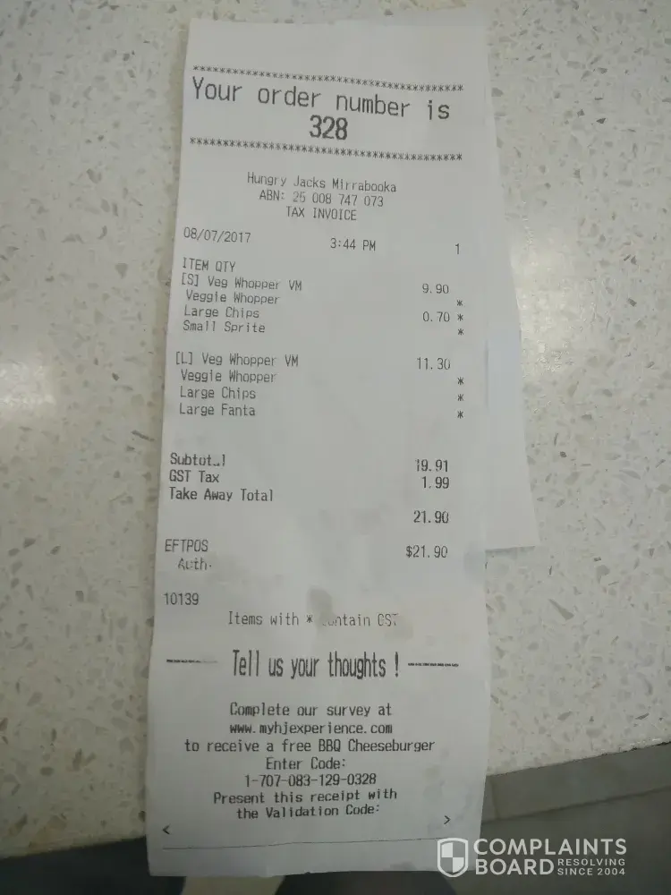 I would like you to maybe consider a voucher for our closet Hungry Jacks in Shepparton Victoria for the inconvenience