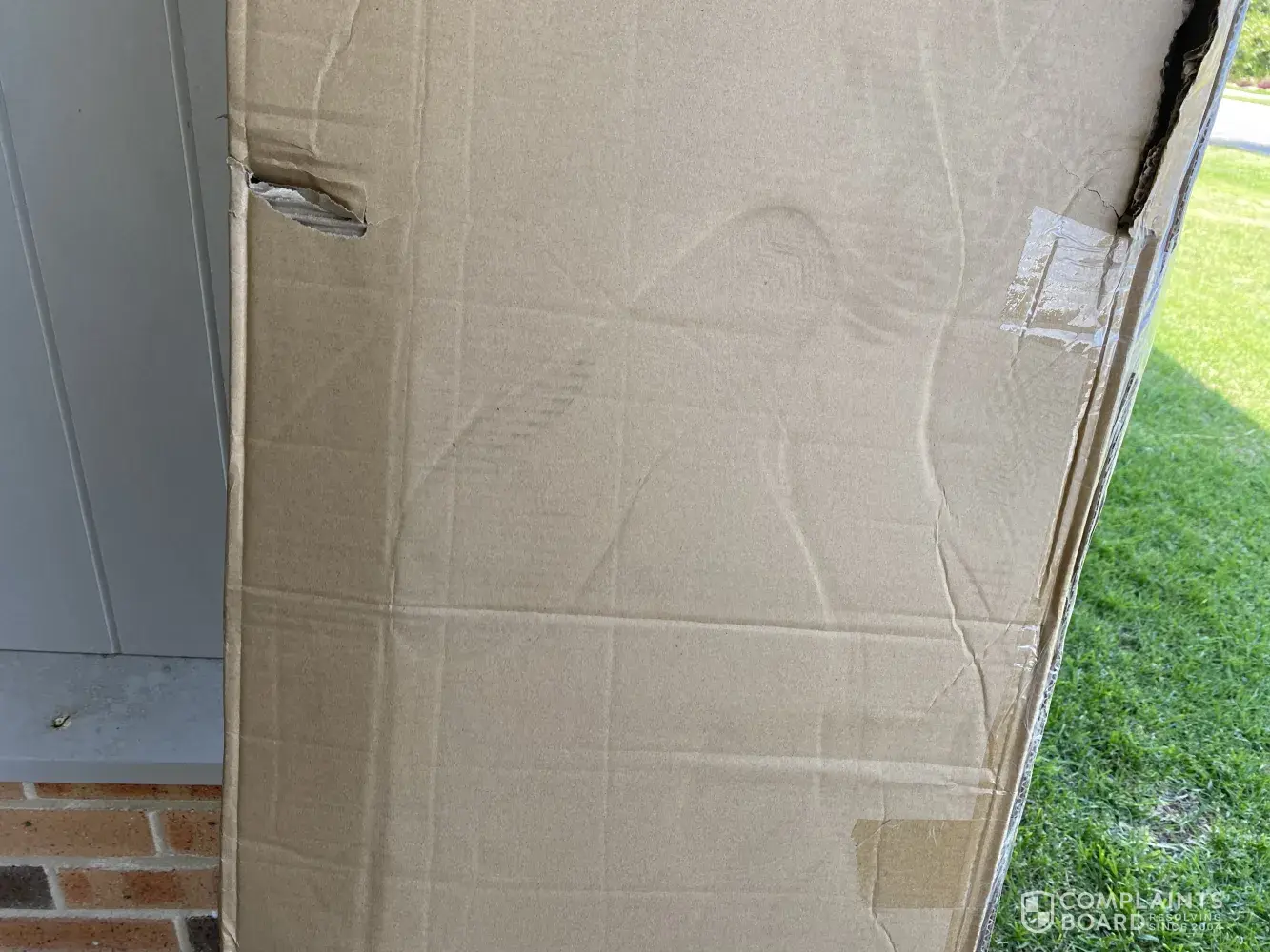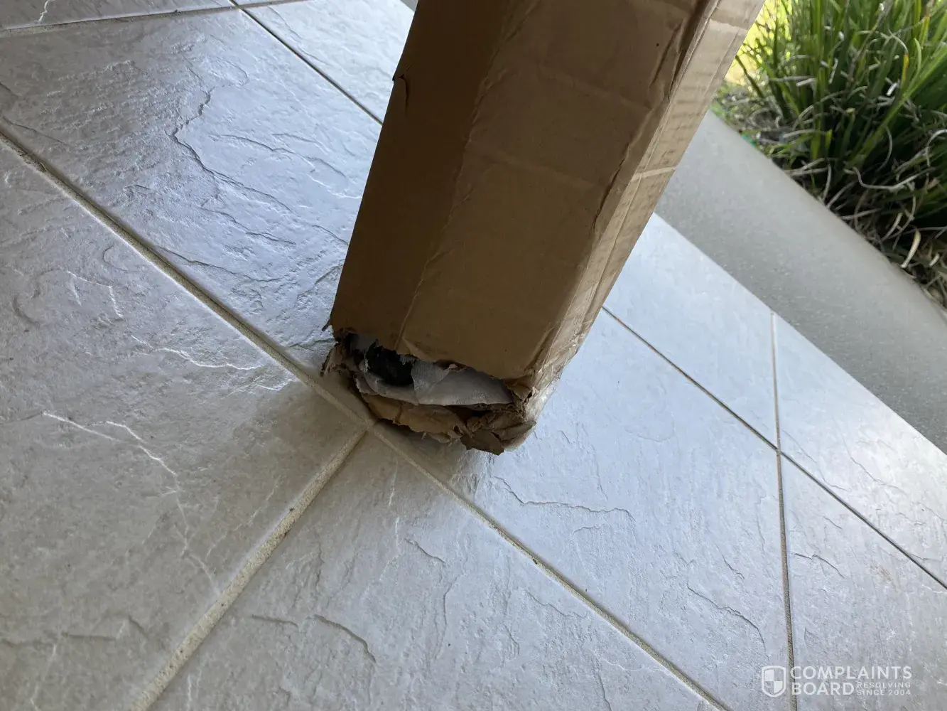 Received half my package today and the box is trashed and there's an oil spill on the box. Foot prints all over the box. As I went to the front door the delivery guy was walking away after I seen him poking bits of the box back in where it was ripped. He said there's still one more box to come and hopped in his van and drove off. I'm guessing he meant it's coming another day.