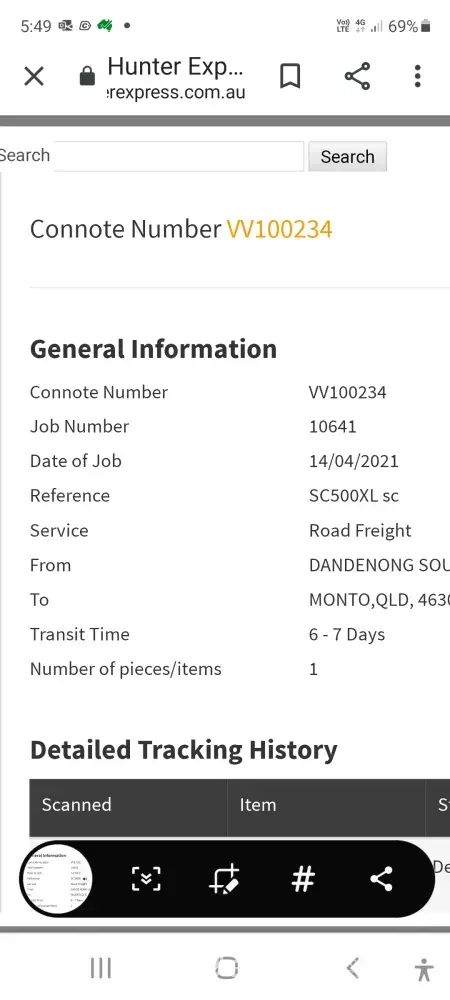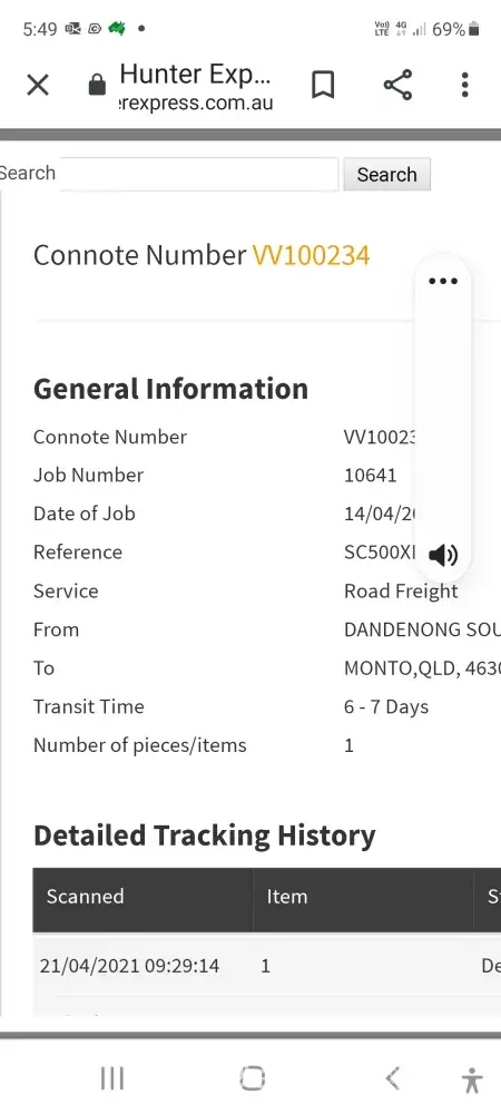 According to the tracking number you received my item on the 18th May from Sydney and it was on its way to Melbourne, well it is now 23rd May and it still hasn't arrived, extremely poor service l will now endeavour to find out what company the business l buy from users as a courier service and if its Hunter l will buy from someone else Tracking number XV430953 BarbaraGraham