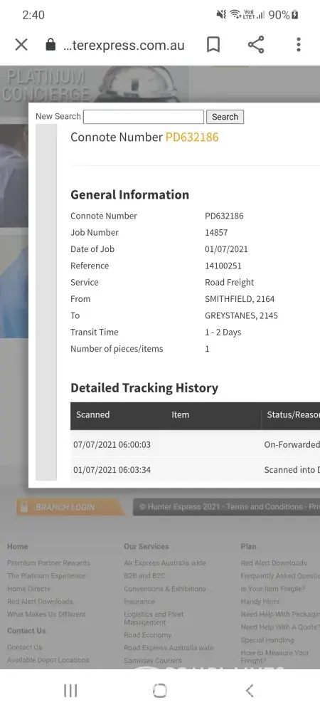 Hunter Express received this consignment into our network on the 1st October, with delivery attempted on the 7th unsuccessfully. (Not sure the reason why this was unsuccessful so apologies if this was an error by the driver)