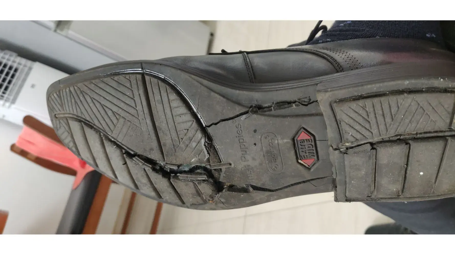 I bought a Hush Puppies black leather shoes with rubber sole. I have used it only for formal occasions and it has been with me for about 2+ years. About a week ago when I used it again, the rubber sole seem to have disintegrated, i.e. separated from the leather, some parts almost brittle, gaps both vertical and horizontal, etc. The leather is almost as good as new with the Hush Puppies logo at the inside still not faded.