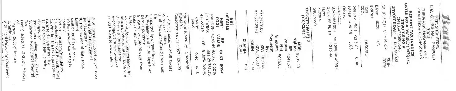 Bata Showroom GSTIN: 27AABCB1043Q1ZM