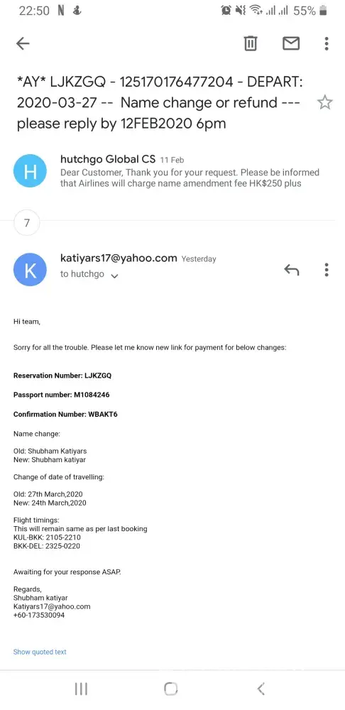 I had raised inquiry to amend my details within ticket but there is no reply to any of my 7 emails. I have never seen such a customer service where they charge hefty amount and even when you agree to pay, they will not give damn about the customer. They also overcharged me for conversion charges once i paid (my paying currency was myr and they accepeted hkd which let me charge heavy conversion charges).