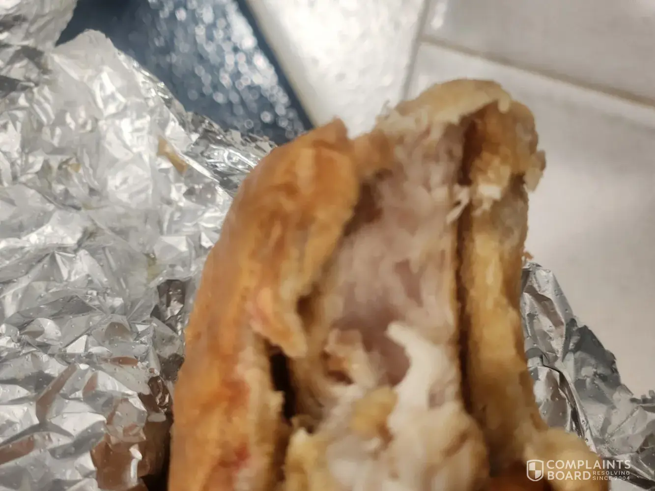At or around 7:30 pm went to hwy 55 drivethru for dinner with my 14 year old Son. Orderes 2 shakes, 2 plain hot dogs and 2 #8 chicken sandwiches "fried". We were eating outside took a bite and realized they served me RAW chicken! And only one looked fried but soggy looked terrable no lettuce, tomato etc. Never EVER going back there again. Don't even know yet but this can hurt someone (ME!) really bad. Should do better!