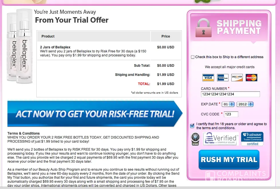 This company advertise on FaceBook and offer a 'Risk Free Trial' on their products. For a few dollars you can try them out ~ allegedly. The FAQ's ask "how can you afford to send them so cheaply?" The answer was, because we are so confident you will love them, you will buy more from us!