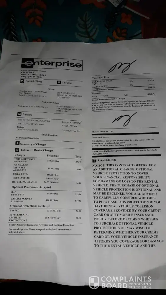 I had planned a vacation to ocean city, MD in Dec. of 2018. This trip was already booked. As June 2 approached, we were ready to drive the2014 Hyundai suv vehicle and the vehicle kept stalling and not stay running. It would only go about 10 mph. I had called the Hyundai dealership (drivers village in cicero ny) they didn't have a rental and we needed to leave that morning for vacation. I HAD NO CHOICE but to rent a vehicle so I could go on vacation. This was such a stressful event to have to pay for another vehicle and struggle to pay for it. It was not part of the vacation plan. I have copies of proof of the bill . I am seeking the goodwill refund, which is $460.76. I spoke to chris today on july 8, 2019 and he stated I fill this out and I would get my refund. Also im still waiting for the Hyundai to still be fixed to this day.