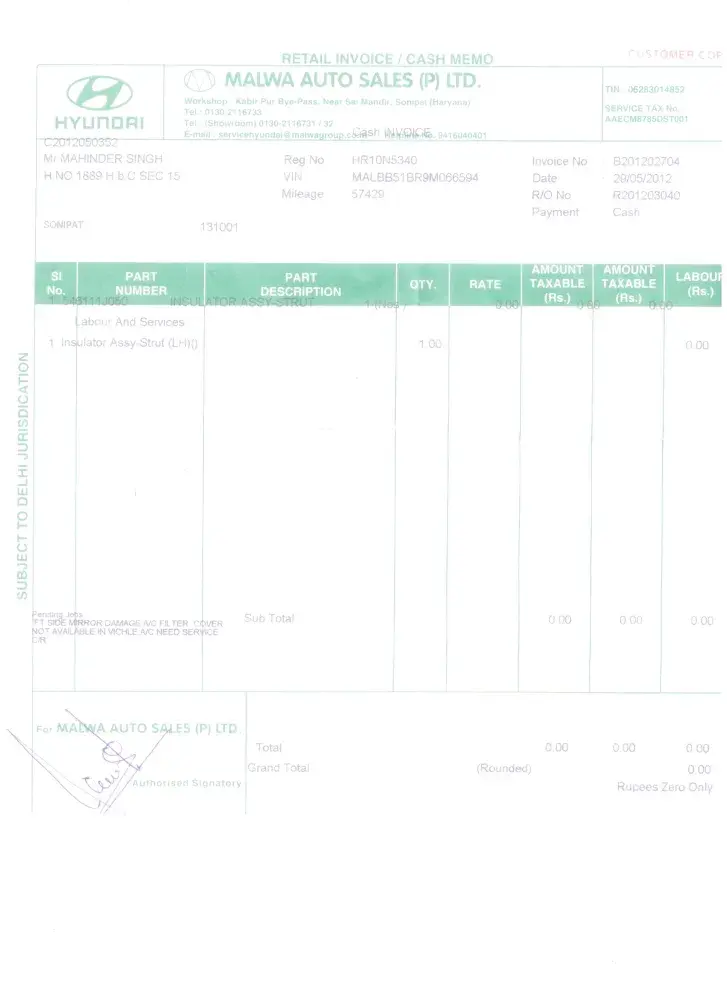 I had purchase HYUNDAI I20 MAGNA car from BOISAR – ANGEL AUTO WORLD In 02/11/2010.