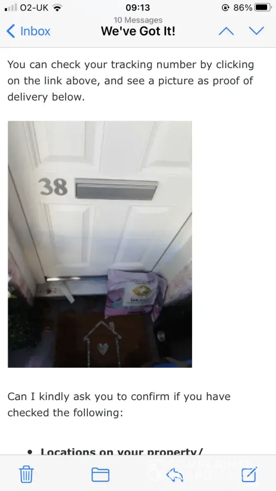 I have not received my order apparently it was left on the door step it was not there when I came home I have checked around the property and asked neighbours and I still can't locate it the order num [protected].