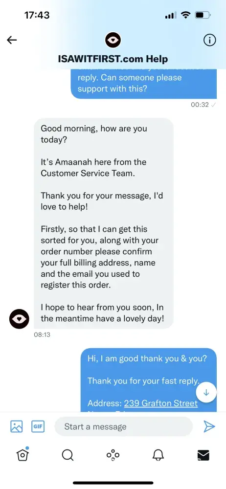 I sent 2 orders back in December. Still awaiting a refund. I contacted I Saw it first on 1st Jan via email no reply so I contacted again, still no reply. So I then moved on to Twitter, to get responses that ask for info then blank you. Really awful customer service. This brand owes me a total of £130!