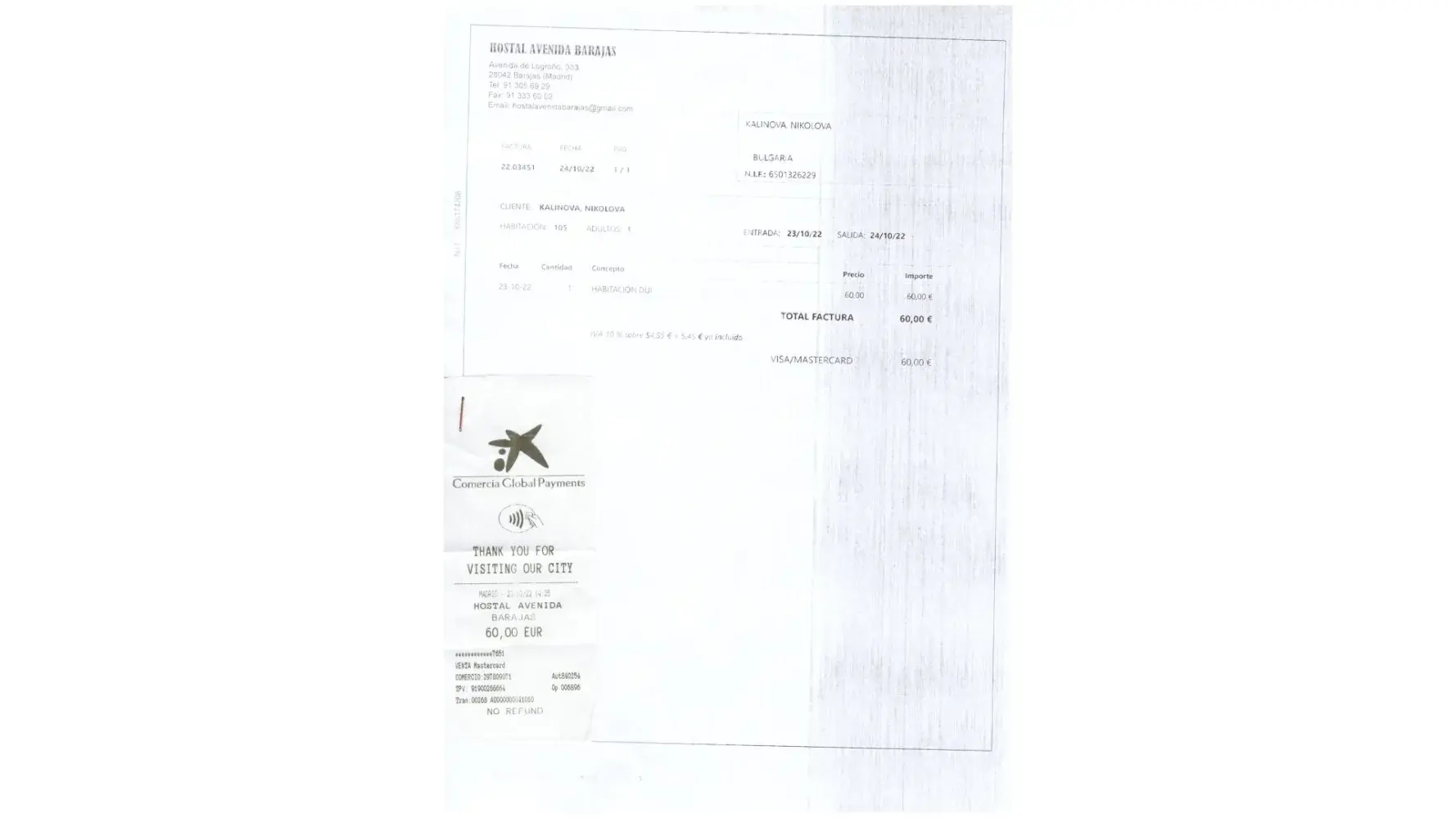 Desired outcome: Please refund prices of ticket Madrid - Sofia (IB 2386, 18.15 h on 22 Oct [protected].43 EUR and hotel in Madrid - 60.00 EUR (total 223.43 EUR).