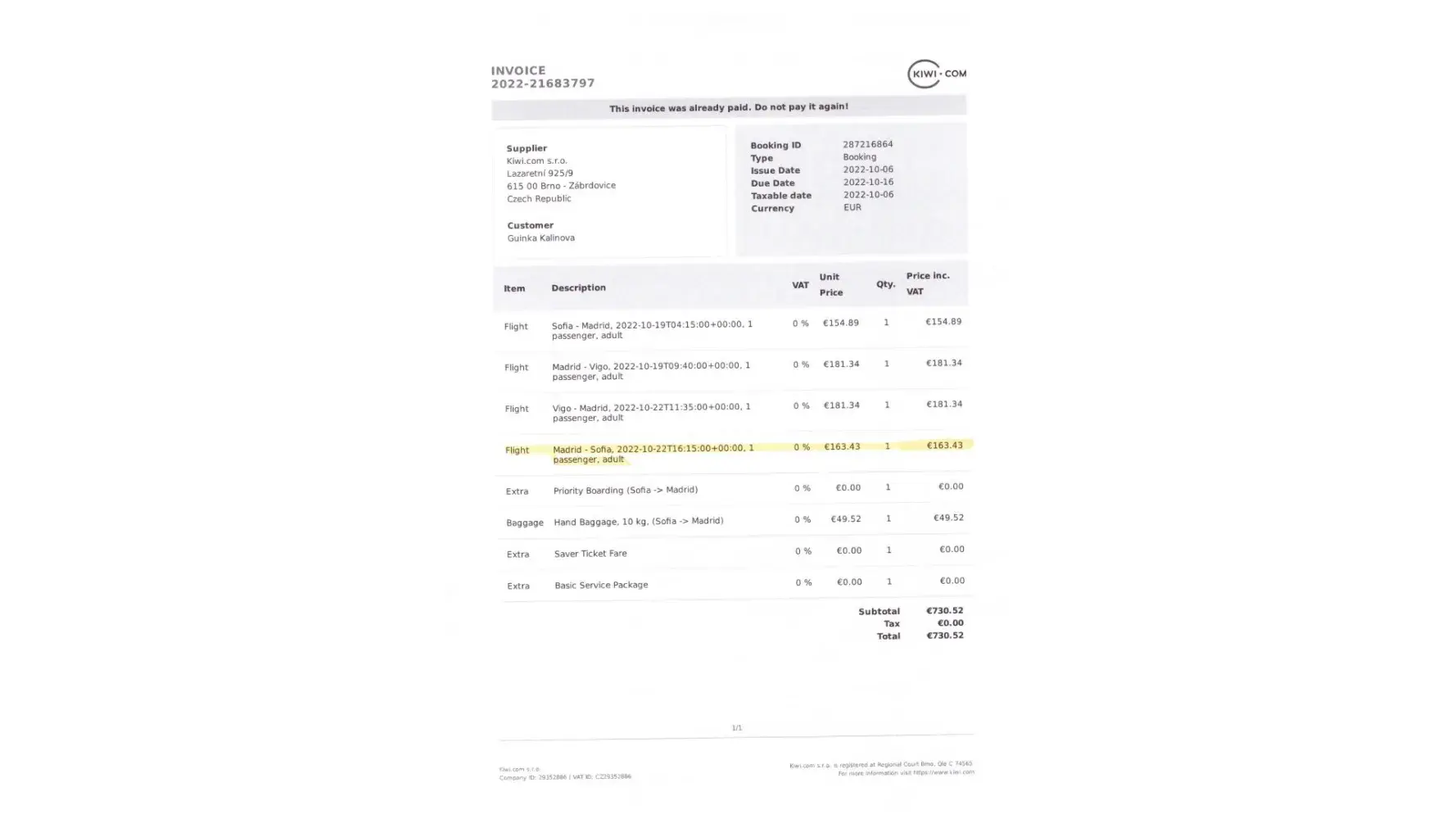 - the price of missed flight (IB 2386, 18.15 h on 22 Oct 2022) is 163.43 EUR;