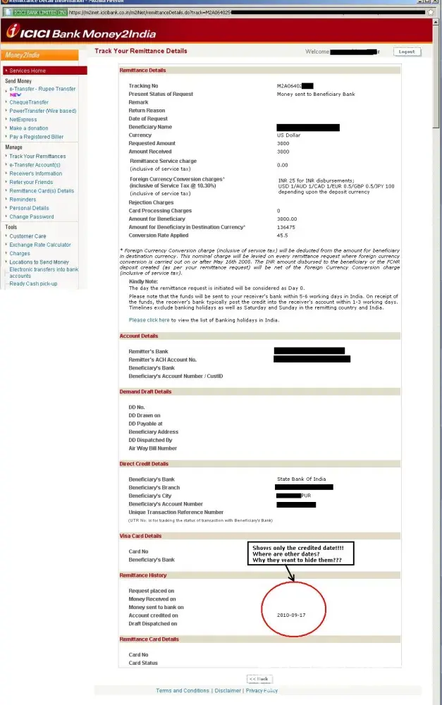 So I opened my ICICI M2I account to see the date they applied exchange rate but to my surprise those dates are blank in my transaction. ICICI applied $45.50 rate to my $3000 transaction. This is extremely disappointing.