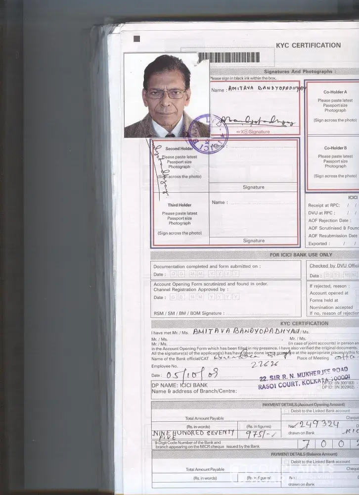 From last one year I have deposited all the details about my demat account twice in ICICI bank and One time in ICICI Direct.