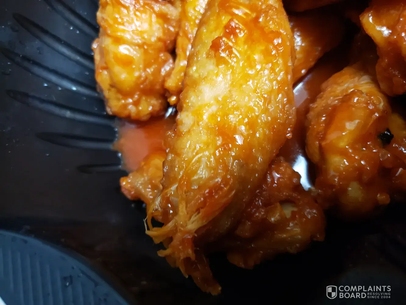I also ordered wings, so my 3 year old daughter and I grabbed each a wing, which I finished it first so I grabbed a 2nd wing and since we where watching a movie I didn't look at the container so I was about to bite it when I felt something weird so I looked at it and surprise, it was covered with feathers . I just took the wing my daughter was eating and I had to puke . How can they not noticewhen they took them out of the fryer? do they even check what they are giving us ? This isn't the first time I sent the pictures to the manager in boise and didn't get a response, I took the pizza to Pizza hut next day and they gave me a $25 dollar credit, I don't really care about money I want them to do their job and learn to handle food correctly