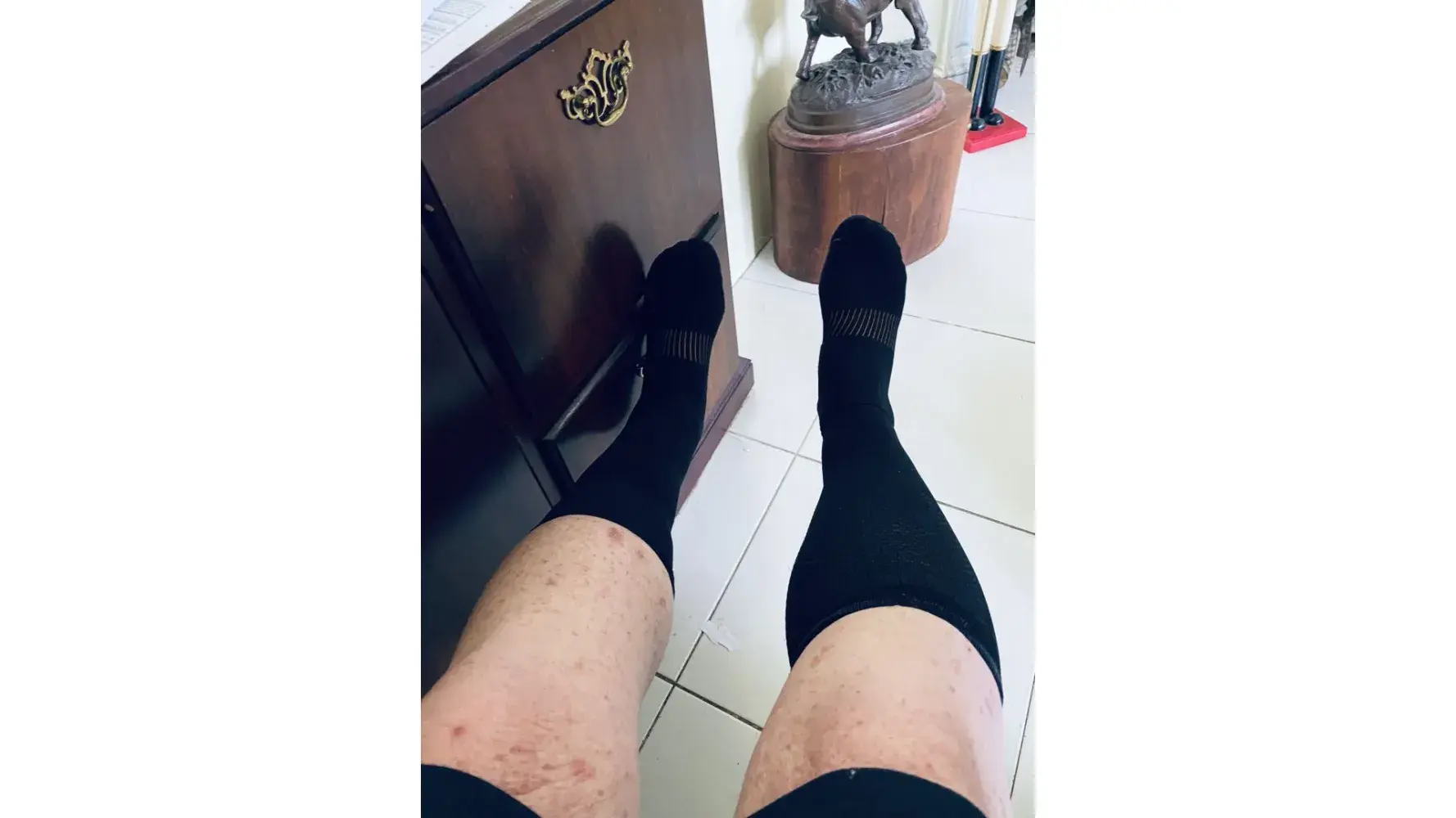 The left sock is shorter than the right one!
