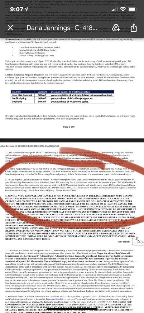 This document indicates there are five pages, however I only see one page. This document is a new contract stating that I will pay an additional $6500. However, I was told that due to covid-19, I had to sign a new contract to make an appointment, however I would not have to pay. Can you please share with me where it says you will not take out another loan in my name through Ally Lending? Also, that I will not have to pay another $6500? I have not rendered this service yet I'm paying for it along with interest so I'm very hesitant to sign anything. Can I please set up a appointment to discuss situation and experience with someone at the local office here in Madison? I have had a less than positive experience with Ideal Image over the past year, and I would rather just be reimbursed for what I have paid.