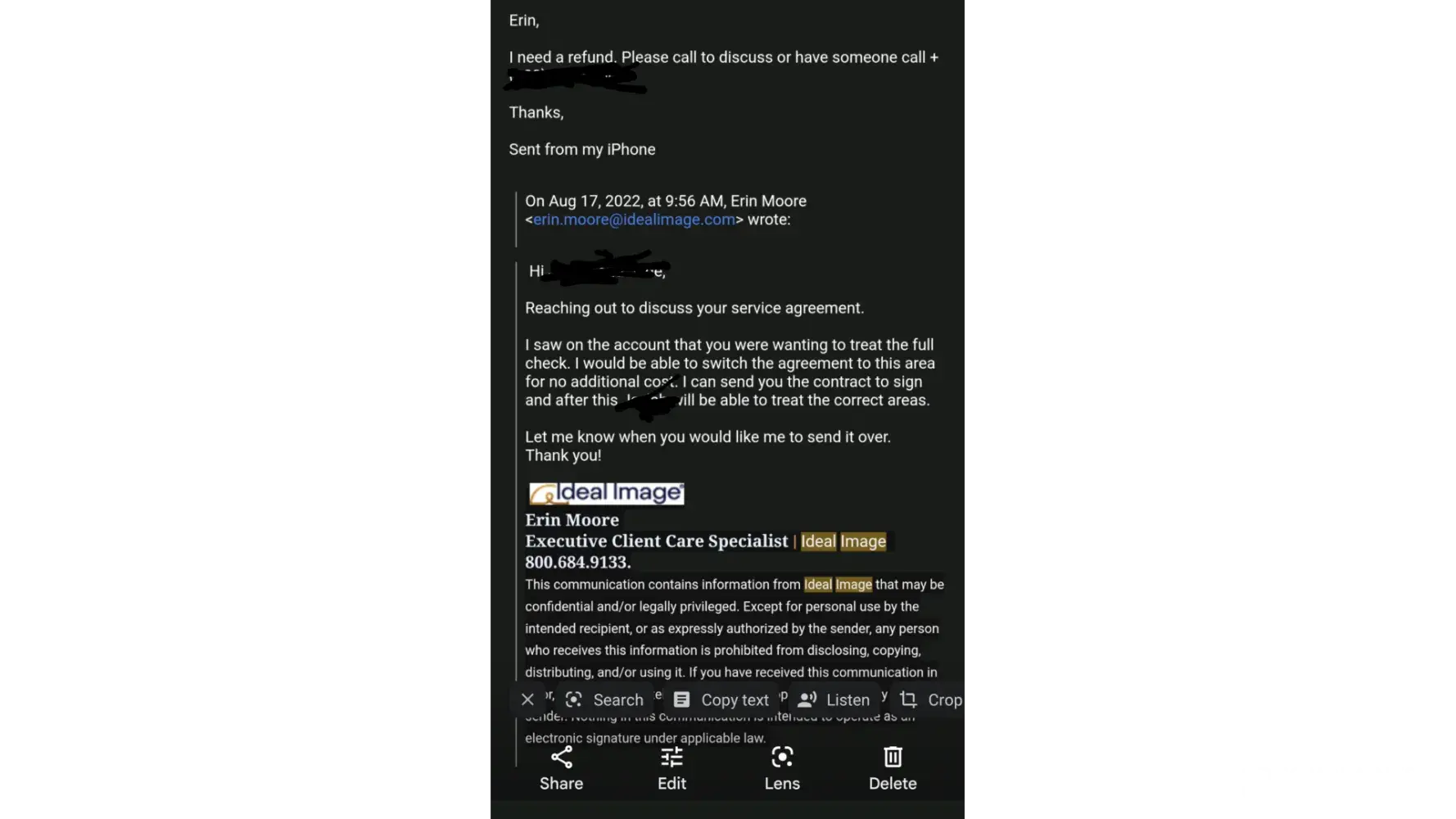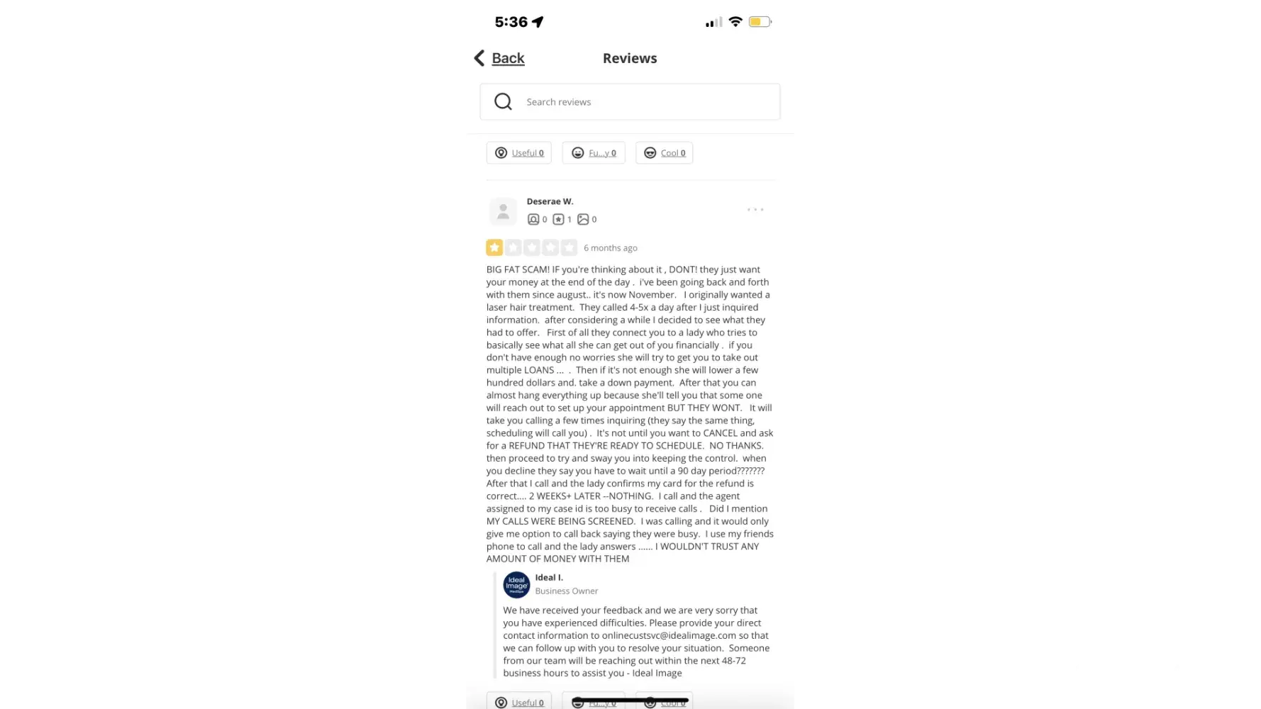 I am having the same issue with Ideal image they 3000.00. no service provide. They are refusing a refund. This has been the worst experience I've ever had. No return calls no responses to emails. Just nothing.