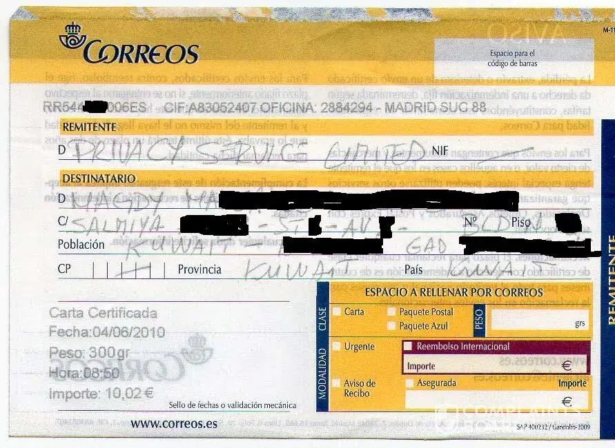 As we see an error in OCR passport number, we reissuing new documents and shipped the 04 June 2010 by certified mail.