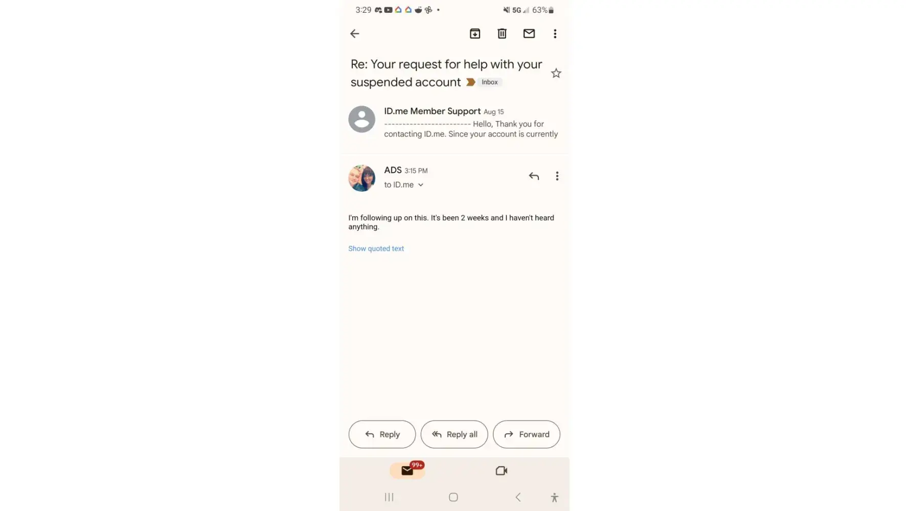 Account Suspended, no one from ID.me has reached out in last two weeks