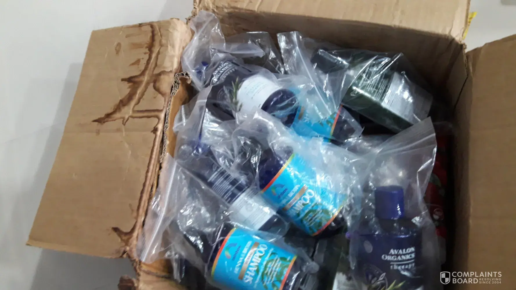 The box was soiled by a leakage from the contents.On opening the box I observed that the leakage was from the shampoos I ordered.