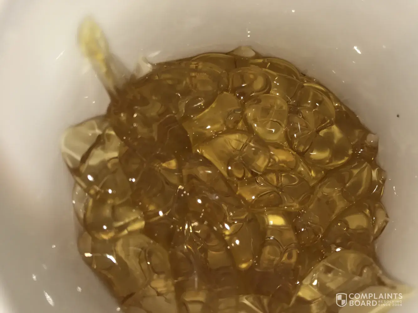 I received my iHerb order after few days, on 15th June 2017 and when I opened it all gelatine capsules inside of box were glued all togehter, melted and damaged with strange dots on each one capsule.