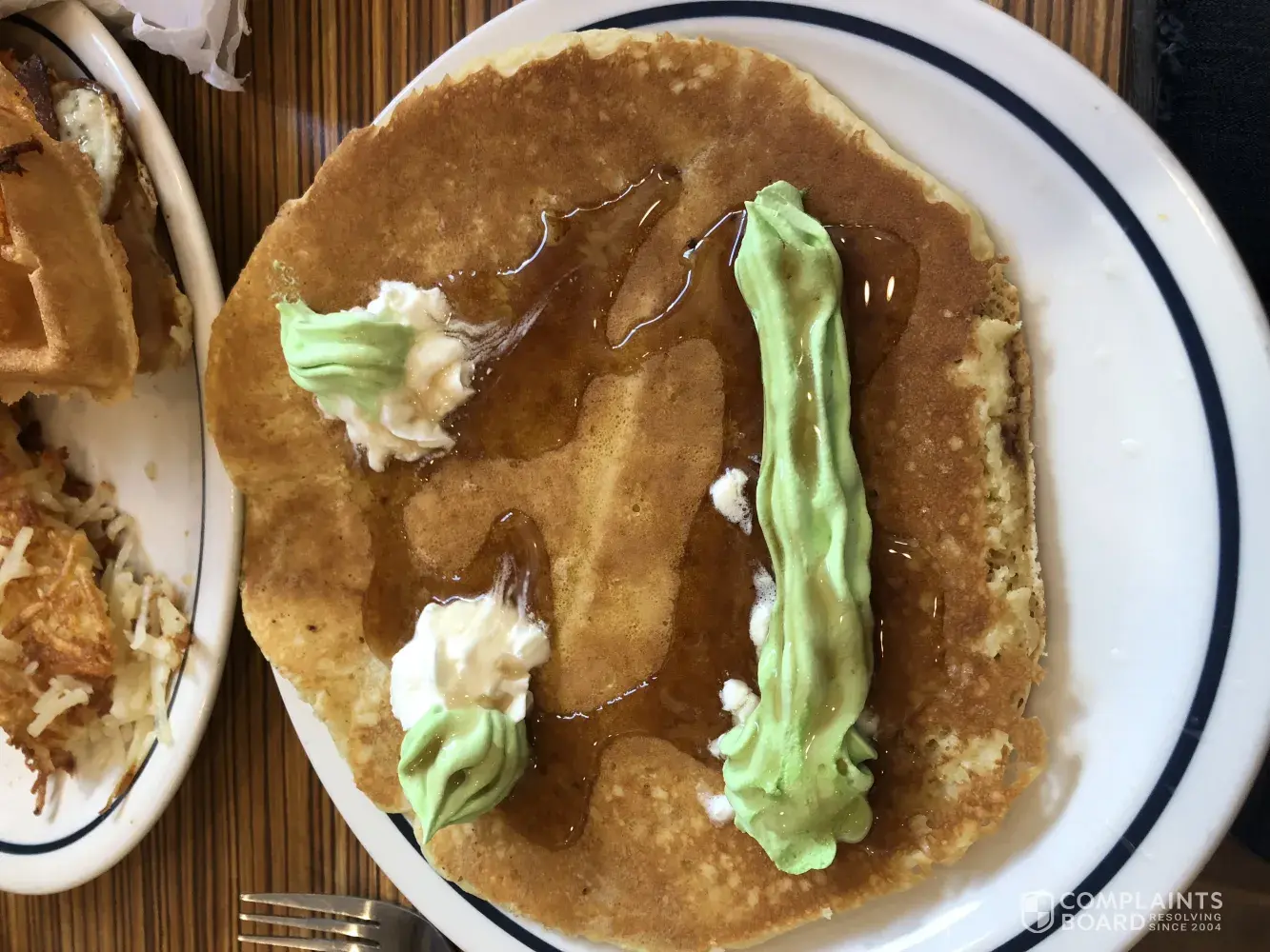 Came into ihop for my sons 4th birthday. Ordered the funny face pancakes and got something completely wrong! I was unhappy. She kept reassuring me that the food was coming and so when this came out I assumed they just tired of having me wait. I would have rather than take another 15 mom to fix if the right way then to send this green stuff out. My son didn't noticed and ate it anyway but I'm very disappointed that it even got sent out like this.