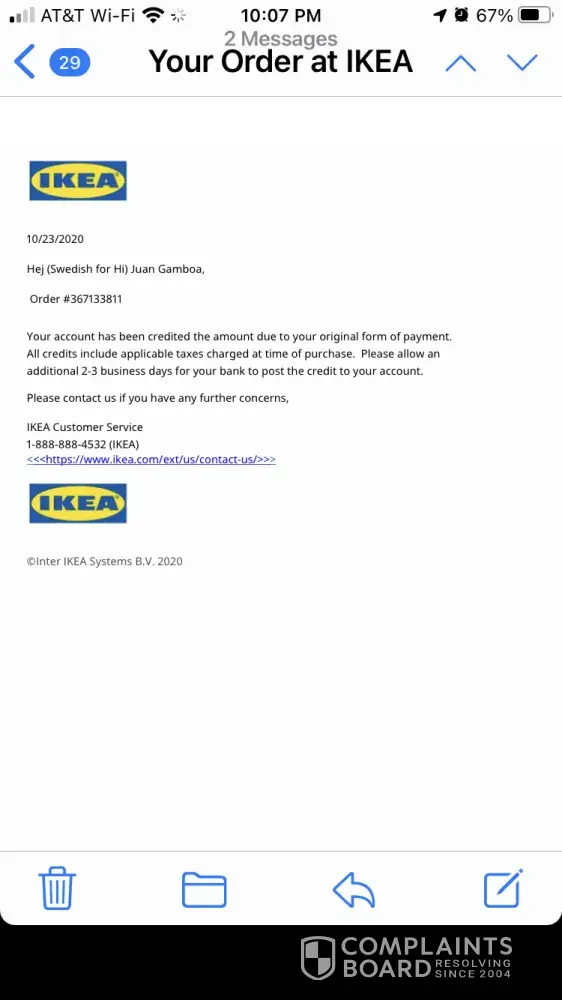 From: sac ecommail [mailto:[protected]@ikea.com]