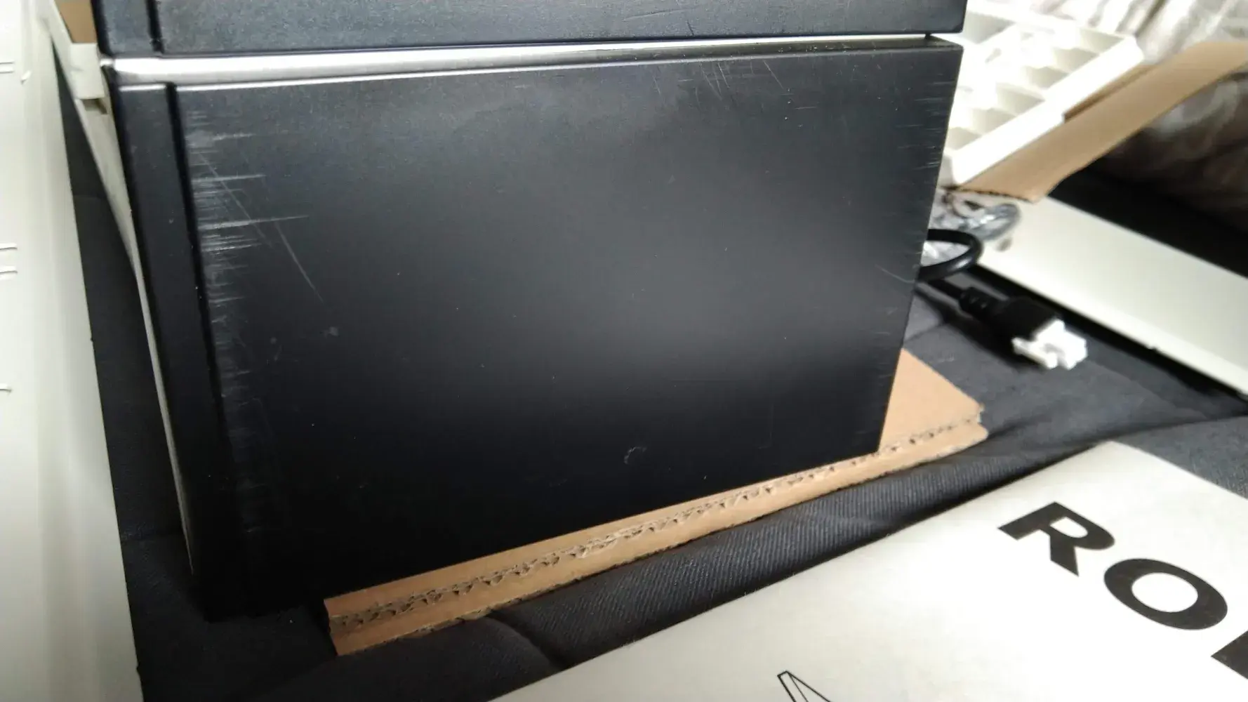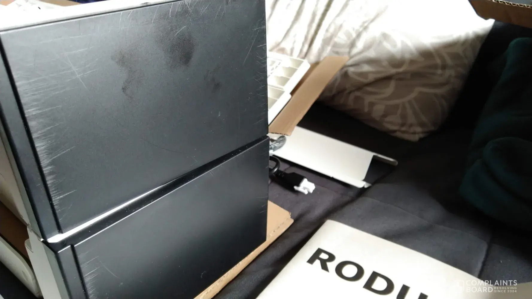 I've recently purchased a brand new Rodulf Standing Desk and the black surface on the footposts were scratchedscuffed when I unboxed them, as you can see from the attached pictures.