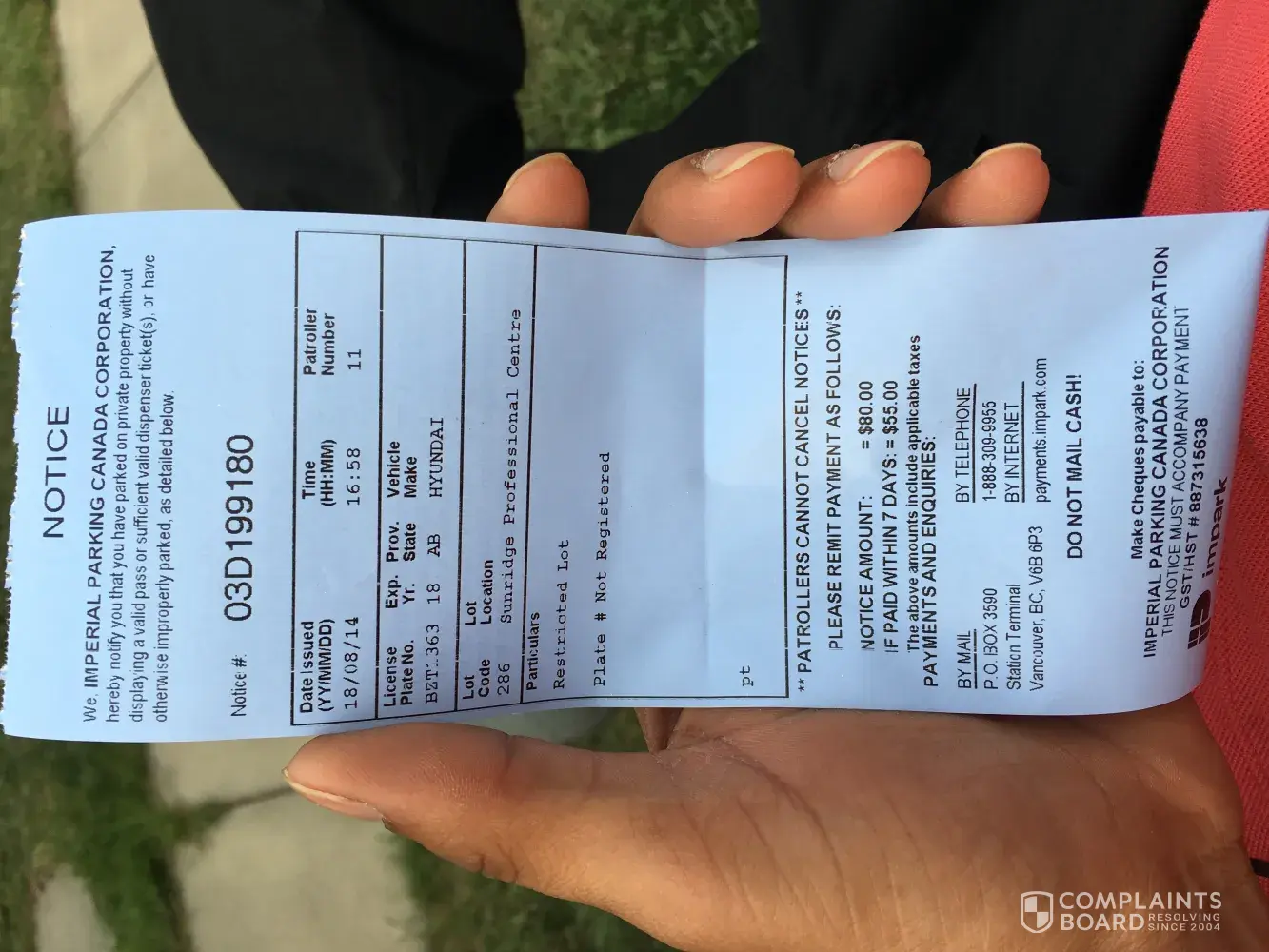 Impark Parking I am complaining about my ticket notice not right