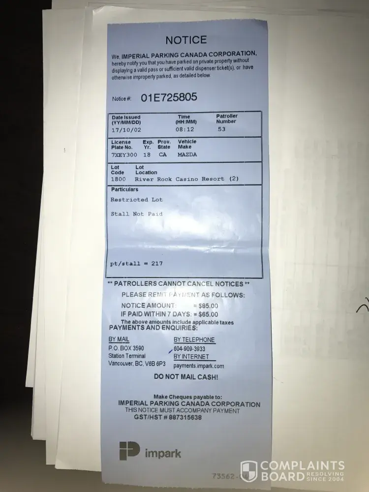 Impark Parking Complaints Page 5 of 6