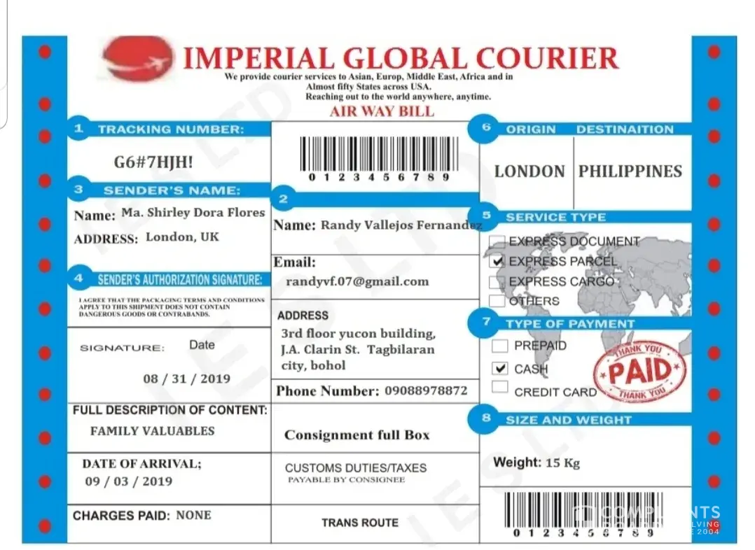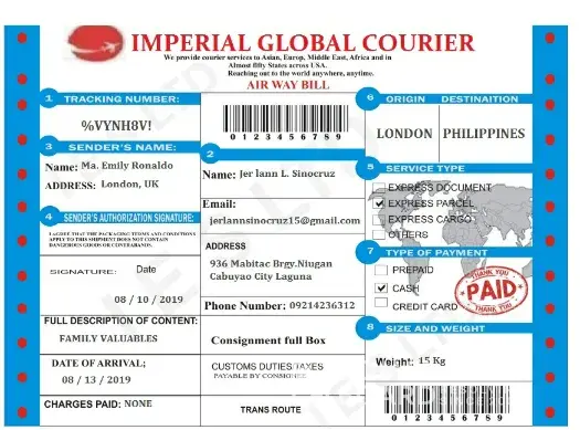 The packaged was coming from UK to Philippines and it was totaly paid by the sender, when the packaged arrived in the Philippines the agent call me that in able to deliver the package i was pay at least 10 000 pesos for the government taxes is it real or a kind of scam