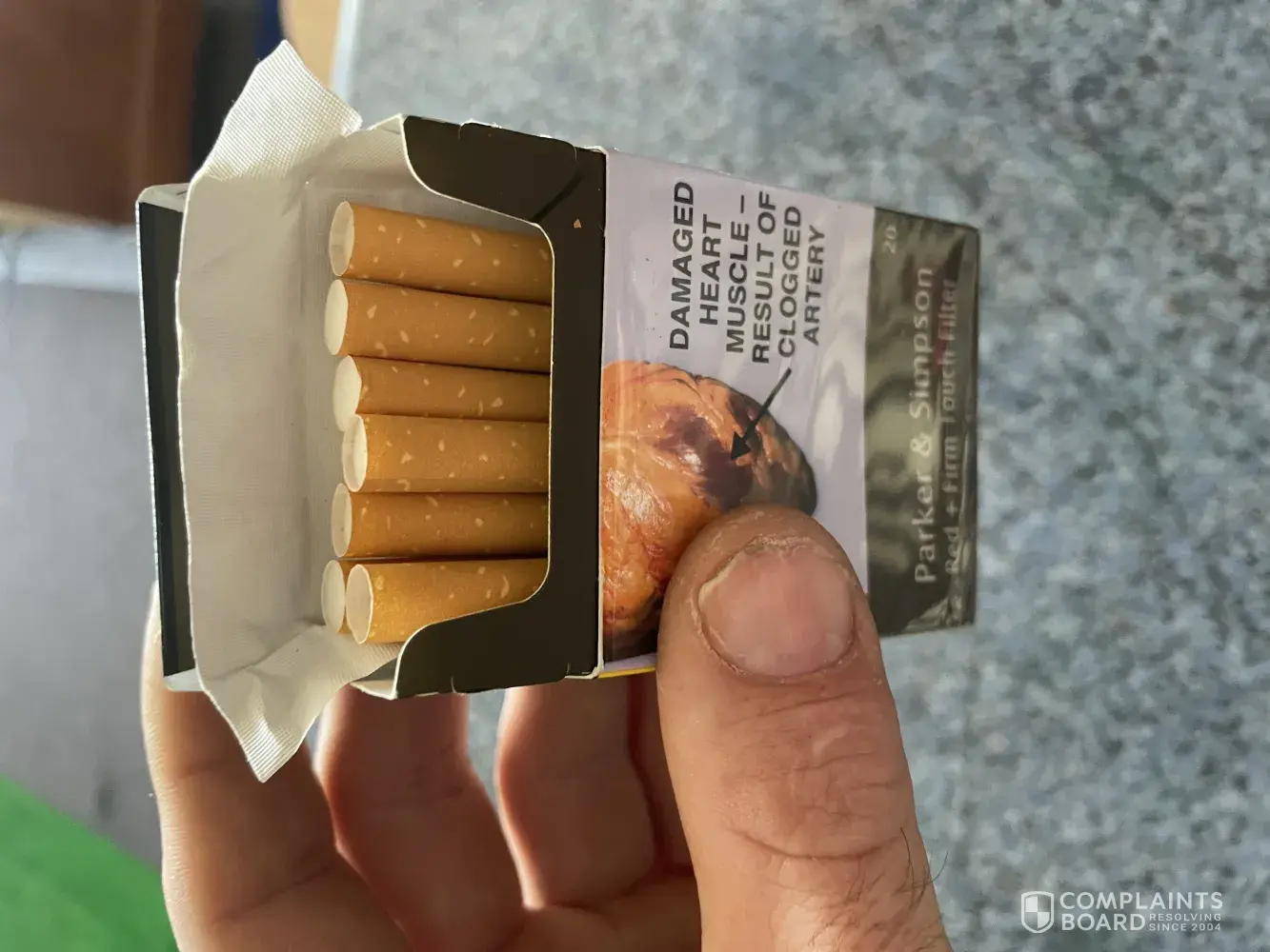 Been smoking Parker & Simpson Red cigarettes for about 3 years now. Had the occasional cigarette with a tear in the paper somewhere along the cigarette which would effect the way the cigarette is consumed, nothing to complain about until today when I bought this park of 20's, about Halfway through the packet of cigarettes I noticed the filter end of the cigarette was getting moist quickly and felt weird in my mouth. Then I noticed the problem when I looked at my remaining cigarettes. See pictures attached. The filter end of the cigarettes have the "rolled paper" around the filter fitted incorrectly, over hanging on several cigarettes by 2-8mm. The quality and consumption of such was effected.