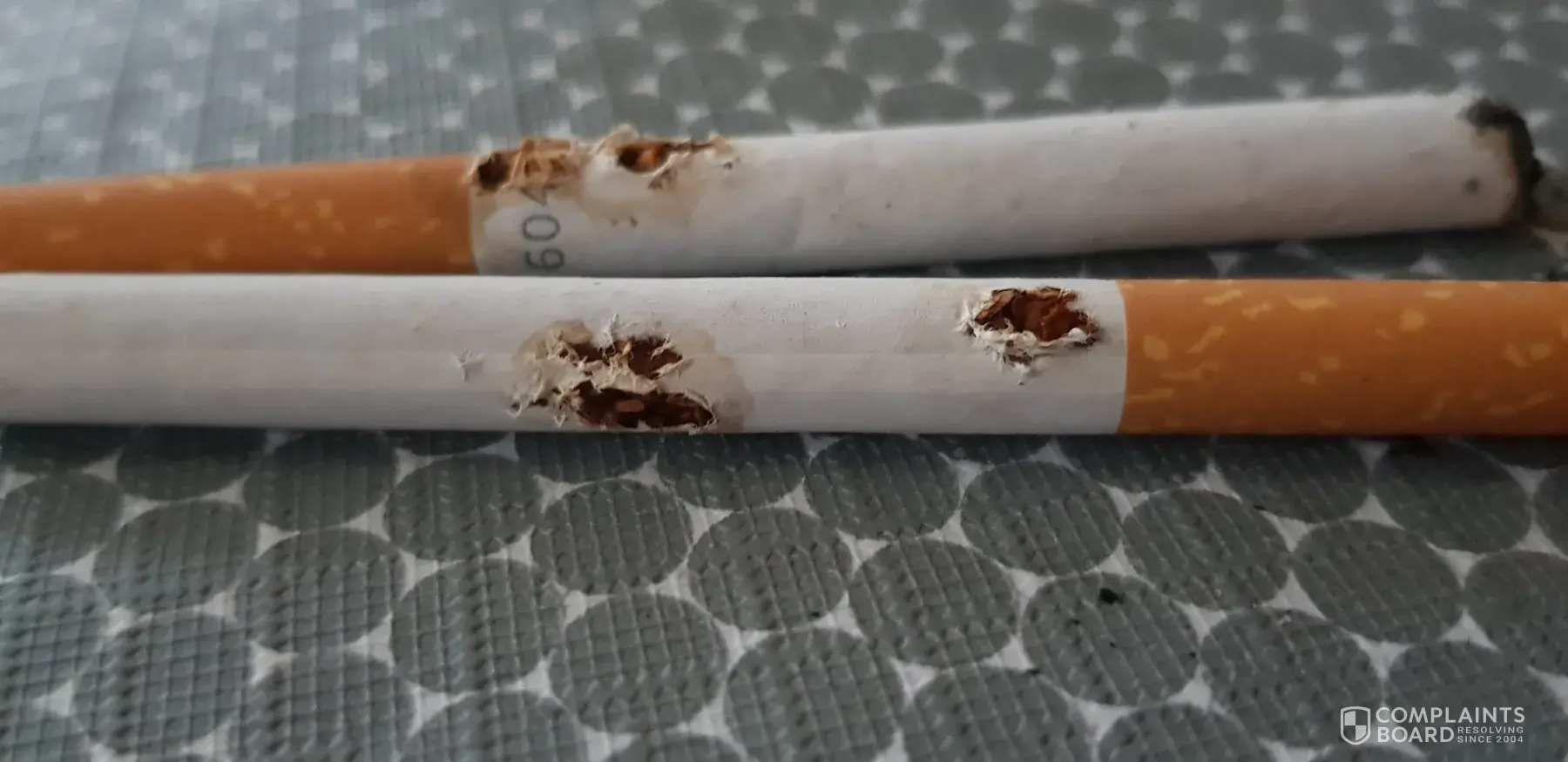 Over half my cigarettes are non-smokable as the filters are not attached properly or have small holes. You can see in the video the small holes around where the filter is attached to the cigarette. Almost every smoke in this packet I have not been able to suck in properly due to the hole in the filters. This is incredibly frustrating as it was the last packet I could afford until pay day
