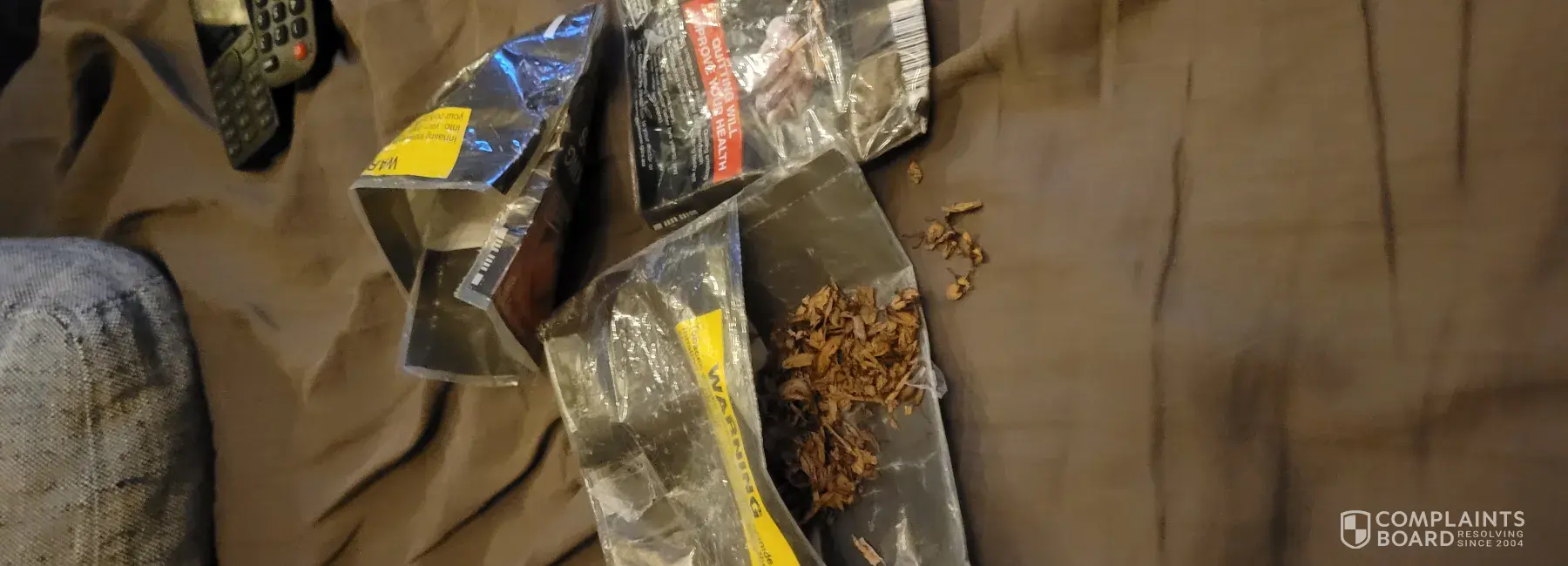 Desired outcome: Refund or complimentary 50 gram replacement tobacco pouch