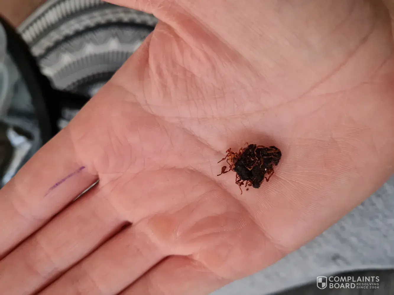 We always buy Jps endless blue 25g tobacco & we find that we get a few chunks of wood like sticks in it, but our last packet contained a lot in the one pack, I have attached a photo, we have been disappointed by the amount in each pack, but the last one was beyond a joke.I always purchase the tobacco from Tsg in noosavillage shopping centre.Thank you