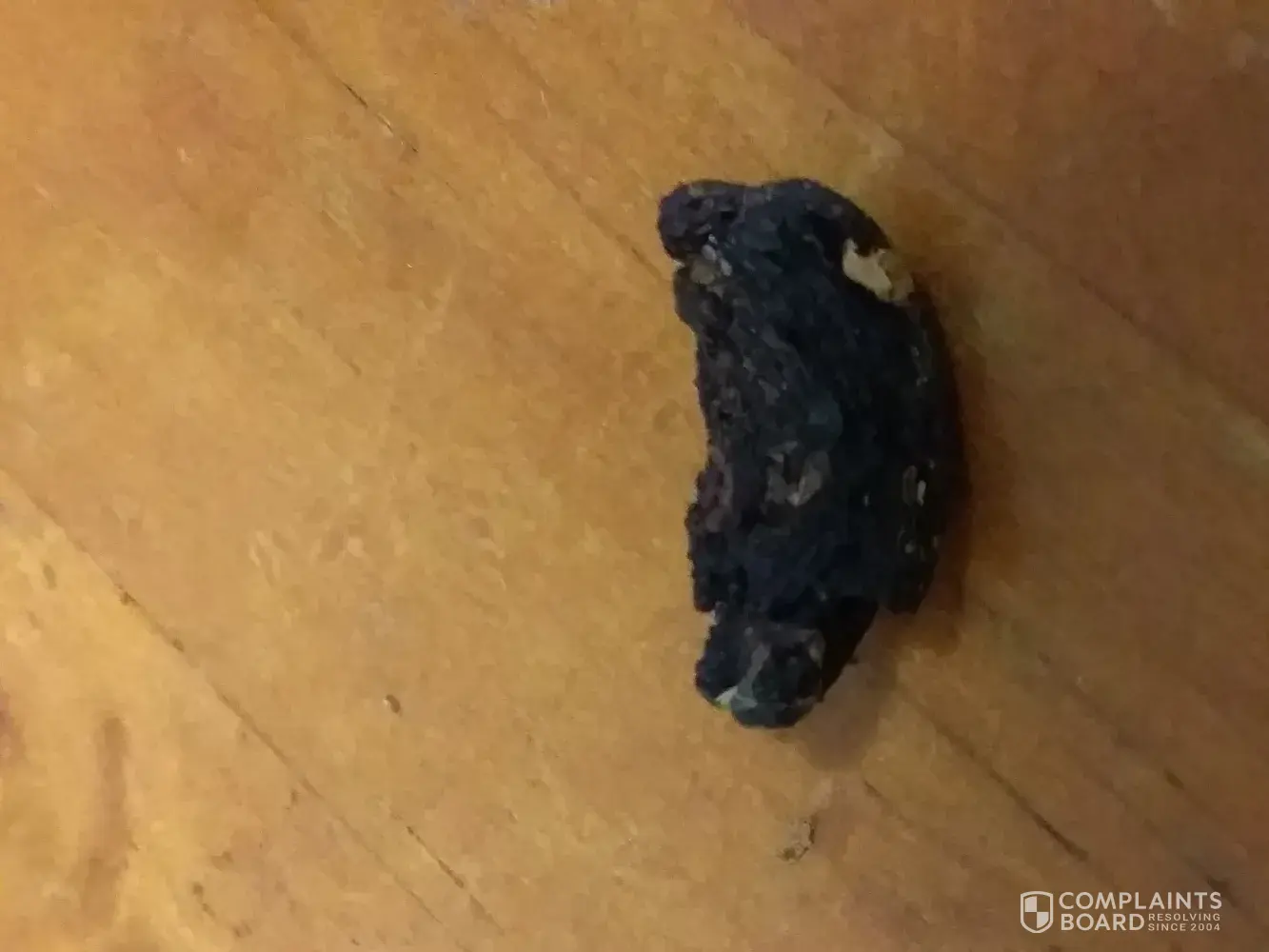 I discovered a large chunk of hard black material in my tobacco. I have taken pictures of it. It's about 12mm long and 5mm wide, it has a ribbed texture on outer surface. It appears to be from inside a pipe and it is the largest chunk of black stuff I have found in tobacco. I think I may have smoked some of the smaller pieces before I discovered this large piece. I did not suffer any adverse reactions to it but I am not pleased with it.