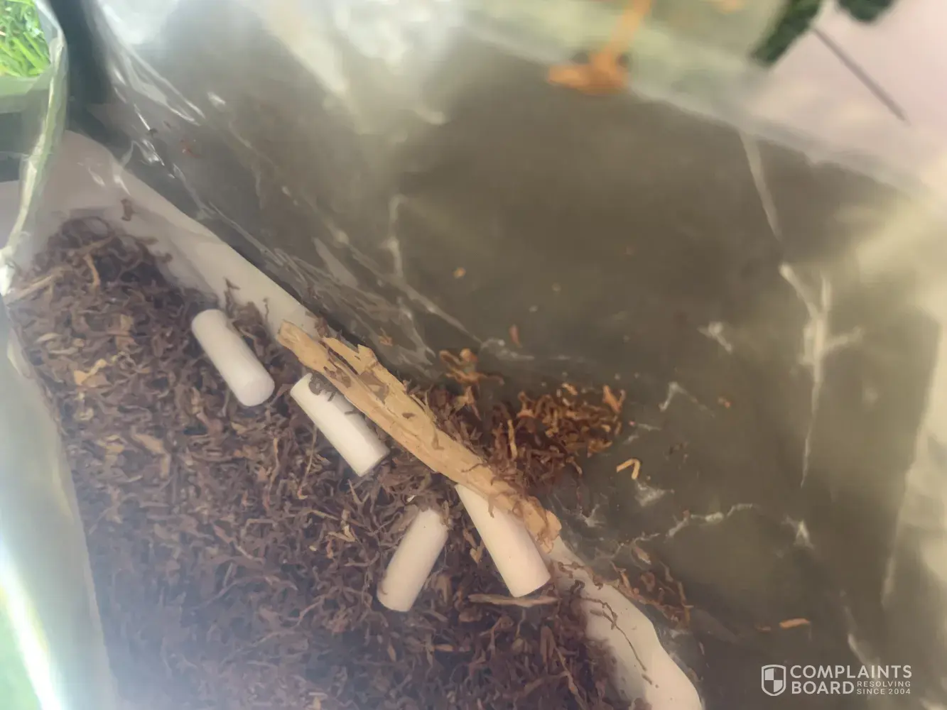 I am contacting you about the large bits of bark and other unidentifiable things i keep getting in my tobacco. Today i found that and also a seed head of some sort of grass. I pay alot for this product so i do not like it when i see i am paying for things i can not put in the cigarette. The other concern is that i assume the grass is a foreign species and i am well aware of what weeds can do to our environment and that our customs are very strict because of such things. I am not sure what i expect from this as i have never complained to a company before. The photo contains what i got out of my current 25g packet. I do not have a receipt on hand as i never take one but i only ever buy my tobacco from Rainbow Fuels Caloundra Qld and i could easily get proof of purchase if necessary. Regards Amy