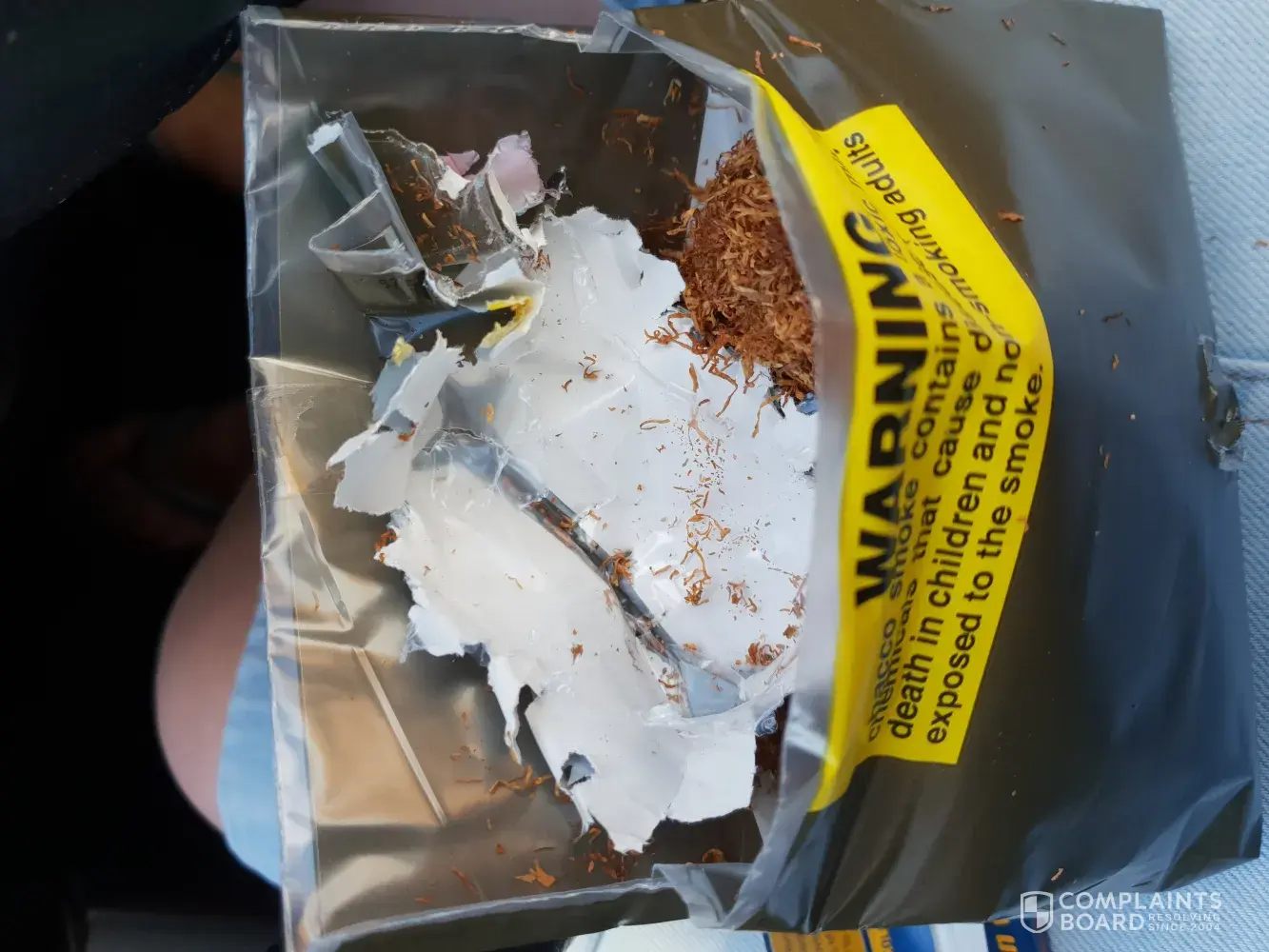 I am complaining here because I can't find anywhere else to complain online. Today I opened my new pack of JPS roll your own Red tobacco (I actually asked for blue but the shop gave me the wrong one.) And when I started rolling I noticed something weird in the pack. I pulled it out to discover half a chewed (by machine) up pack of another plasic pouch. Yay so half of my "tobacco was actually a plastic pouch and only actually half tobacco! Hesitant to buy your products again when on tob of that I have noticed a lot of "bark" in my tobacco of late.