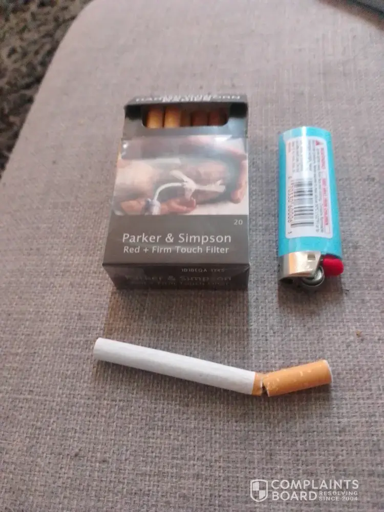 Hi my name is Renee Richards and I have been purchasing Parker and Simpson blue 25's for about 3-4 months now, I enjoy the cigarette, they are great prices and with both myself and my partner smoking it works well with financial needs. I purchased 8 packets of these smokes from Woolworths in Parramatta spending $207 and in every packet I opened there was smokes that couldn't be lit or smoked due to the paper around the filter not being correctly placed. I have added a few photo's to prove this. We had to pull the cigarette apart and roll it into a Rollie cigarette. If we wanted to smoke rollies I would buy tobacco. I am annoyed that this has come about as we spend so much money each week on cigarettes and we have to make our own cigarette out of your tailor made products.