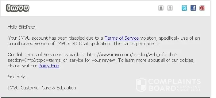 IMVU My account was permanently banned