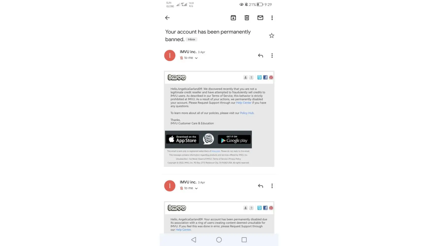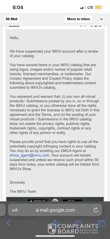 IMVU Banned my Account unfairly