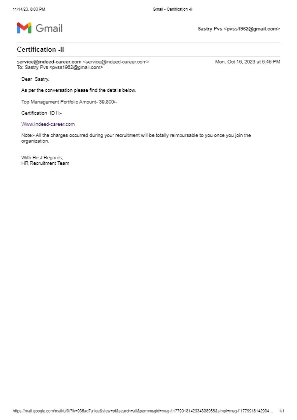 Several users have reported concerns about the legitimacy of Indeed.com as a job board or recruiter. We suggest that you proceed with caution when using this website and thoroughly research any job opportunities or offers before providing personal information.