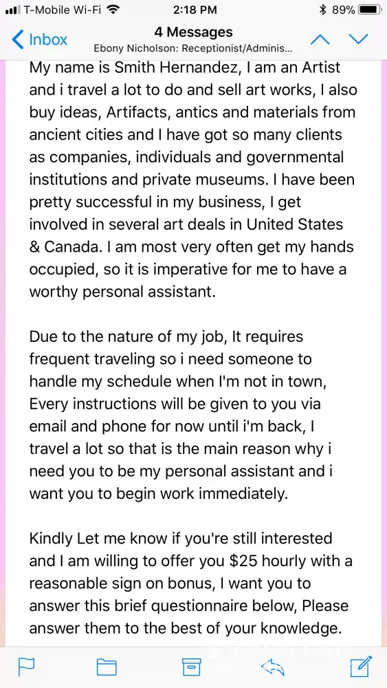 I do not appreciate being called by an immigrant on Memorial Day, an American holiday just so I can be solicited for a job.